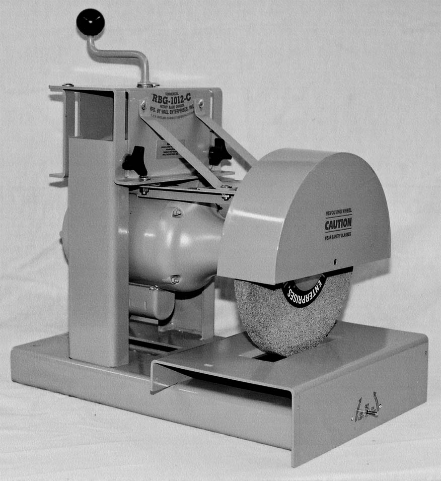 One of our original models and the workhorse of the RBG line, the RBG 1012-C is our most popular commercial grinder. With a 1 H.P. motor and 12" ceramic wheel, this machine is ready to meet the most demanding of your sharpening needs. The larger sized wheel gives you the ability to sharpen not only all the blades of the smaller models but also larger rotary style brush hog blades. A larger grinding wheel also means more surface feet per minute while grinding so you will get the job done in less time.